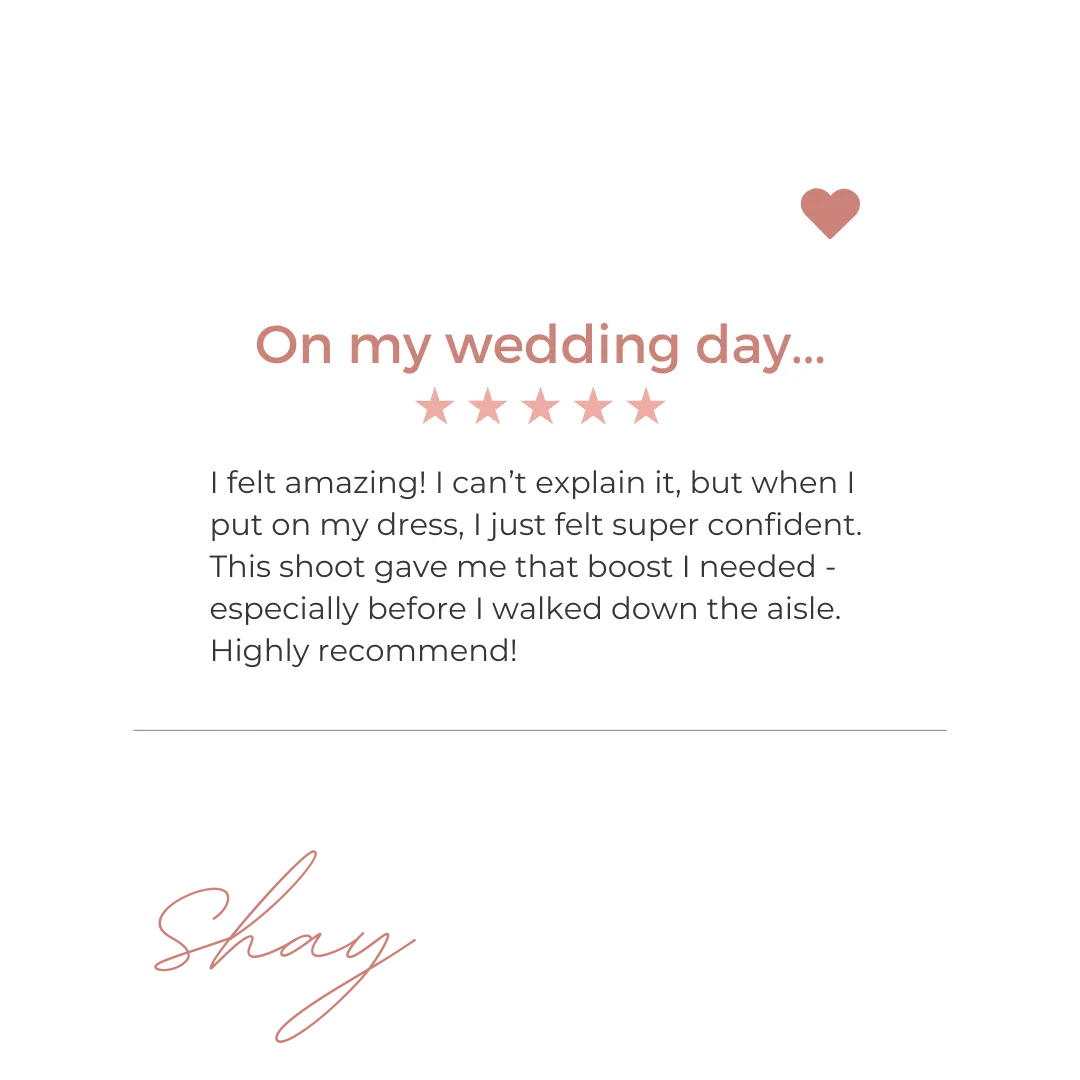 Weddings are work!. We want to give you something a little EXTRA as a confidence boost you maybe didn't know you needed! How about a day to relax, a glow-up and some captivating photos of you in your bridal lingerie or a fine art bridal gown session? Let's call it a "therapy" session that doubles as a gift to your partner. Don't miss out on this BRIDAL SHOW PROMO!